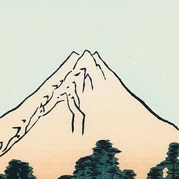 題名のとおり、全図に富士山のある風景を描いたシリーズ物で、葛飾北斎の代表作にとどまらず、浮世絵風景画の代表作ともいわれています。はじめ、三十六図が刊行されましたが、好評のため十図が追加され、計四十六図が刊行されました。当初の三十六図を「表富士」、追加の十図を「裏富士」と呼びます。富士山への篤い信仰は今と変わらず人々の間にあり、当時、集団で富士山に参拝する「富士講」が盛んに行われるなど、こうした社会背景のなかで北斎は『富嶽三十六景』を描き、爆発的ヒットとなりました。