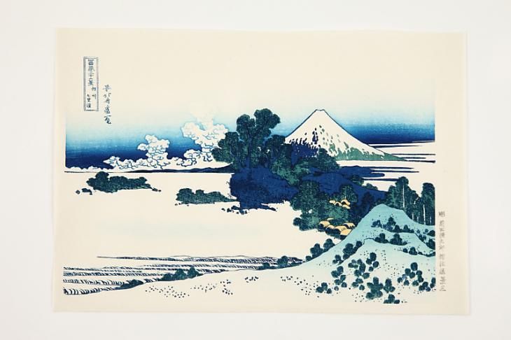 題名のとおり、全図に富士山のある風景を描いたシリーズ物で、葛飾北斎の代表作にとどまらず、浮世絵風景画の代表作ともいわれています。はじめ、三十六図が刊行されましたが、好評のため十図が追加され、計四十六図が刊行されました。当初の三十六図を「表富士」、追加の十図を「裏富士」と呼びます。富士山への篤い信仰は今と変わらず人々の間にあり、当時、集団で富士山に参拝する「富士講」が盛んに行われるなど、こうした社会背景のなかで北斎は『富嶽三十六景』を描き、爆発的ヒットとなりました。